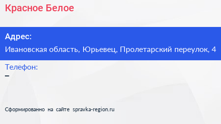 Красное & Белое по адресу Ивановская область, Юрьевец, Пролетарский переулок, 4 в дальнейшем Организация, размещена в следующих категориях:
