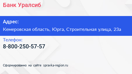 Банк Уралсиб по адресу Кемеровская область, Юрга, Строительная улица, 23а в дальнейшем Организация, размещена в следующих категориях:
