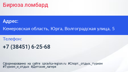 Бирюза, ломбард по адресу Кемеровская область, Юрга, Волгоградская улица, 5 в дальнейшем Организация, размещена в следующих категориях: