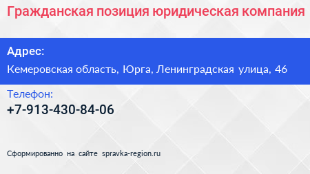 Гражданская позиция, юридическая компания по адресу Кемеровская область, Юрга, Ленинградская улица, 46 в дальнейшем Организация, размещена в следующих категориях: