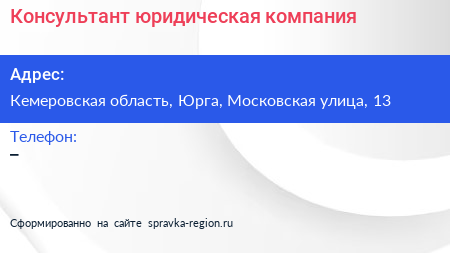 Консультант, юридическая компания по адресу Кемеровская область, Юрга, Московская улица, 13 в дальнейшем Организация, размещена в следующих категориях: