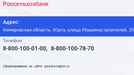 Россельхозбанк по адресу Кемеровская область, Юрга, улица Машиностроителей, 35 в дальнейшем Организация, размещена в следующих категориях: