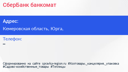 СберБанк, банкомат по адресу Кемеровская область, Юрга, в дальнейшем Организация, размещена в следующих категориях: