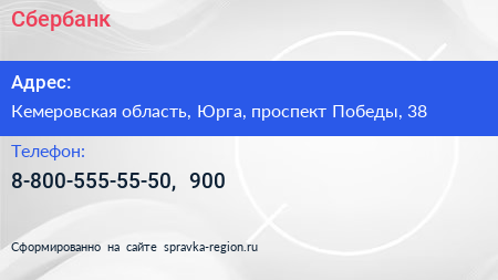 Сбербанк по адресу Кемеровская область, Юрга, проспект Победы, 38 в дальнейшем Организация, размещена в следующих категориях: