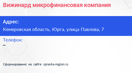 Вижинард, микрофинансовая компания по адресу Кемеровская область, Юрга, улица Павлова, 7 в дальнейшем Организация, размещена в следующих категориях: