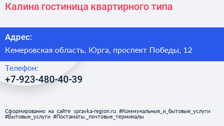 Калина, гостиница квартирного типа по адресу Кемеровская область, Юрга, проспект Победы, 12 в дальнейшем Организация, размещена в следующих категориях: