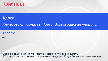 Кристалл по адресу Кемеровская область, Юрга, Волгоградская улица, 2 в дальнейшем Организация, размещена в следующих категориях: