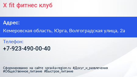 X-fit, фитнес-клуб по адресу Кемеровская область, Юрга, Волгоградская улица, 2а в дальнейшем Организация, размещена в следующих категориях: