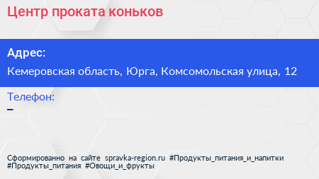 Центр проката коньков по адресу Кемеровская область, Юрга, Комсомольская улица, 12 в дальнейшем Организация, размещена в следующих категориях: