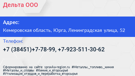 Дельта, ООО по адресу Кемеровская область, Юрга, Ленинградская улица, 52 в дальнейшем Организация, размещена в следующих категориях: