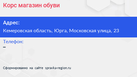 Корс, магазин обуви по адресу Кемеровская область, Юрга, Московская улица, 23 в дальнейшем Организация, размещена в следующих категориях: