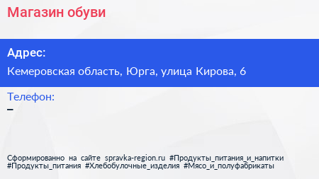 Магазин обуви по адресу Кемеровская область, Юрга, улица Кирова, 6 в дальнейшем Организация, размещена в следующих категориях: