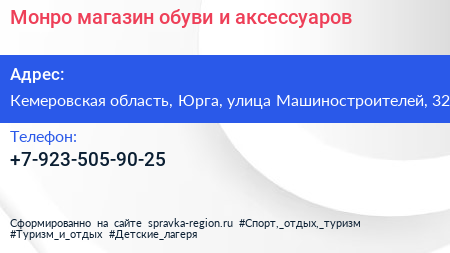 Монро, магазин обуви и аксессуаров по адресу Кемеровская область, Юрга, улица Машиностроителей, 32 в дальнейшем Организация, размещена в следующих категориях: