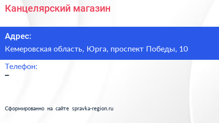 Канцелярский магазин по адресу Кемеровская область, Юрга, проспект Победы, 10 в дальнейшем Организация, размещена в следующих категориях: