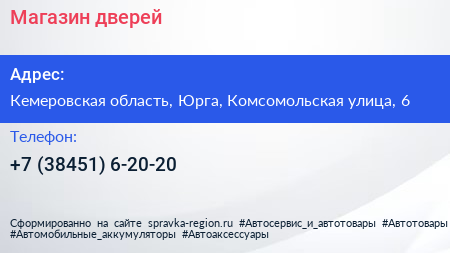 Магазин дверей по адресу Кемеровская область, Юрга, Комсомольская улица, 6 в дальнейшем Организация, размещена в следующих категориях: