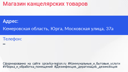 Магазин канцелярских товаров по адресу Кемеровская область, Юрга, Московская улица, 37а в дальнейшем Организация, размещена в следующих категориях: