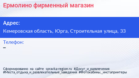 Ермолино, фирменный магазин по адресу Кемеровская область, Юрга, Строительная улица, 33 в дальнейшем Организация, размещена в следующих категориях: