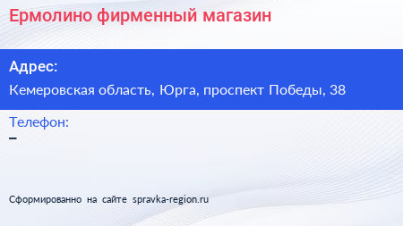 Ермолино, фирменный магазин по адресу Кемеровская область, Юрга, проспект Победы, 38 в дальнейшем Организация, размещена в следующих категориях: