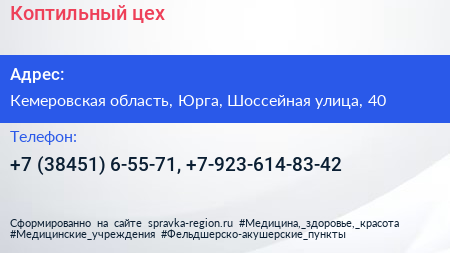 Коптильный цех по адресу Кемеровская область, Юрга, Шоссейная улица, 40 в дальнейшем Организация, размещена в следующих категориях: