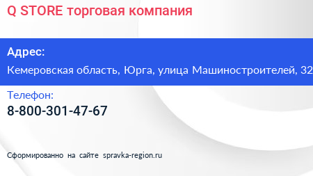 Q STORE, торговая компания по адресу Кемеровская область, Юрга, улица Машиностроителей, 32 в дальнейшем Организация, размещена в следующих категориях: