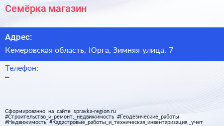 Семёрка, магазин по адресу Кемеровская область, Юрга, Зимняя улица, 7 в дальнейшем Организация, размещена в следующих категориях: