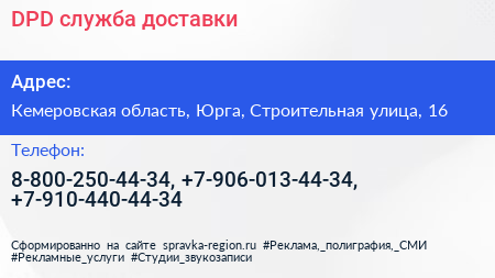 DPD, служба доставки по адресу Кемеровская область, Юрга, Строительная улица, 16 в дальнейшем Организация, размещена в следующих категориях:
