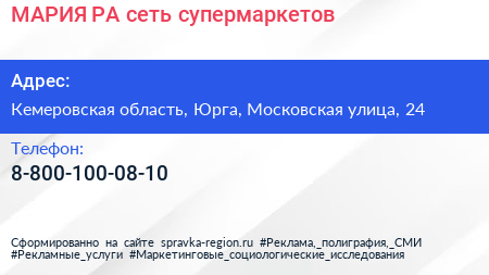 МАРИЯ-РА, сеть супермаркетов по адресу Кемеровская область, Юрга, Московская улица, 24 в дальнейшем Организация, размещена в следующих категориях: