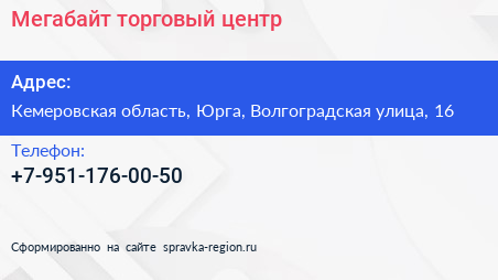 Мегабайт, торговый центр по адресу Кемеровская область, Юрга, Волгоградская улица, 16 в дальнейшем Организация, размещена в следующих категориях: