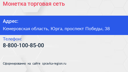 Монетка, торговая сеть по адресу Кемеровская область, Юрга, проспект Победы, 38 в дальнейшем Организация, размещена в следующих категориях: