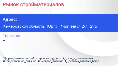 Рынок стройматериалов по адресу Кемеровская область, Юрга, Кирпичная 2-я, 29а в дальнейшем Организация, размещена в следующих категориях: