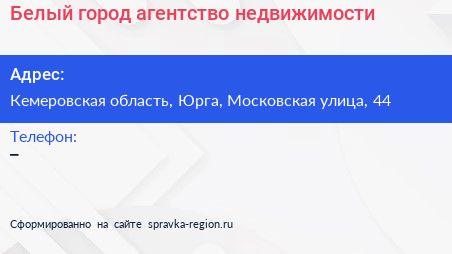 Белый город, агентство недвижимости по адресу Кемеровская область, Юрга, Московская улица, 44 в дальнейшем Организация, размещена в следующих категориях: