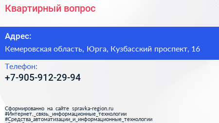Квартирный вопрос по адресу Кемеровская область, Юрга, Кузбасский проспект, 16 в дальнейшем Организация, размещена в следующих категориях: