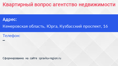 Квартирный вопрос, агентство недвижимости по адресу Кемеровская область, Юрга, Кузбасский проспект, 16 в дальнейшем Организация, размещена в следующих категориях: