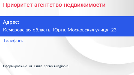 Приоритет, агентство недвижимости по адресу Кемеровская область, Юрга, Московская улица, 23 в дальнейшем Организация, размещена в следующих категориях: