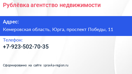 Рублёвка, агентство недвижимости по адресу Кемеровская область, Юрга, проспект Победы, 11 в дальнейшем Организация, размещена в следующих категориях: