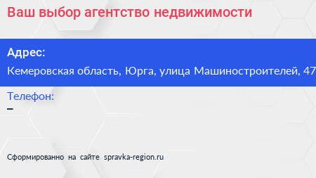Ваш выбор, агентство недвижимости по адресу Кемеровская область, Юрга, улица Машиностроителей, 47 в дальнейшем Организация, размещена в следующих категориях: