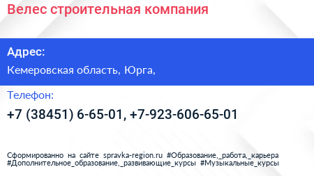Велес, строительная компания по адресу Кемеровская область, Юрга, в дальнейшем Организация, размещена в следующих категориях: