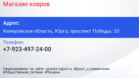 Магазин ковров по адресу Кемеровская область, Юрга, проспект Победы, 10 в дальнейшем Организация, размещена в следующих категориях: