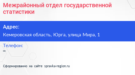 Межрайонный отдел государственной статистики по адресу Кемеровская область, Юрга, улица Мира, 1 в дальнейшем Организация, размещена в следующих категориях: