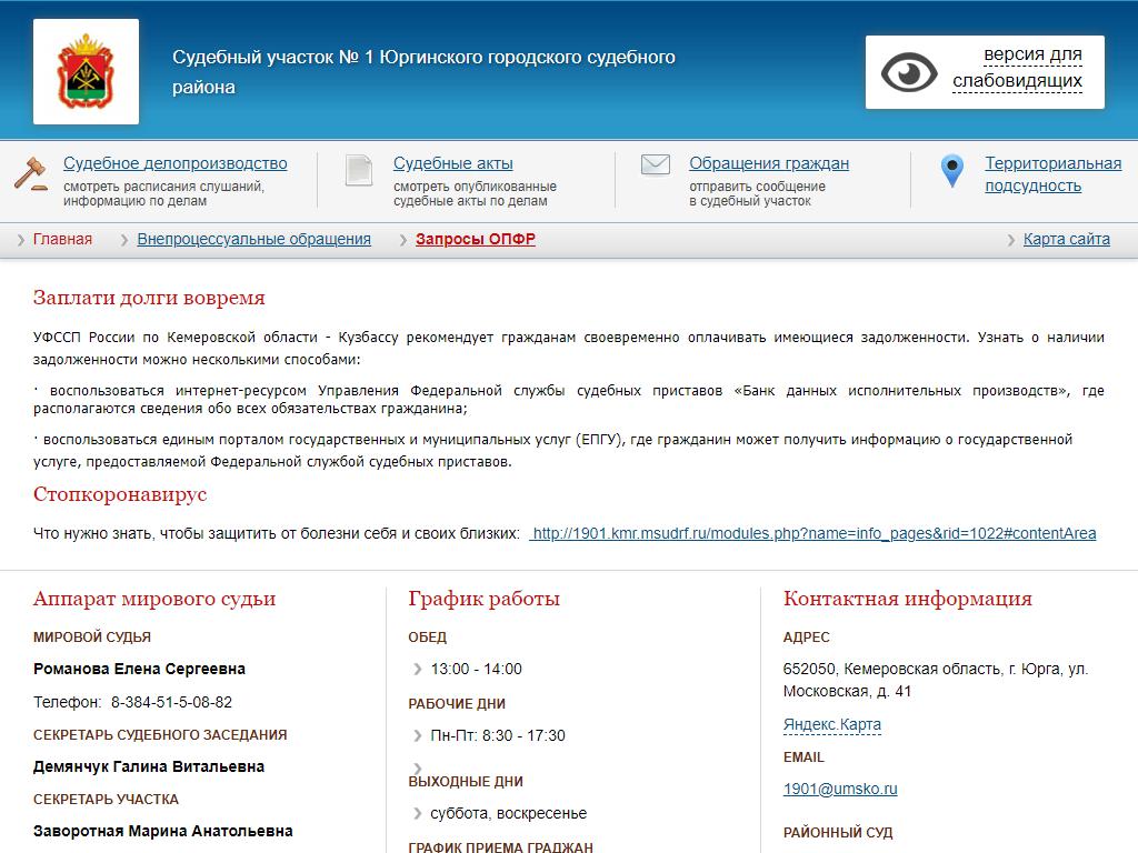Мировой судья судебного участка №1 по адресу Кемеровская область, Юрга, Московская улица, 41 в дальнейшем Организация, размещена в следующих категориях: