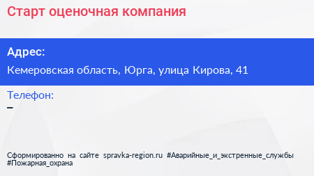 Старт, оценочная компания по адресу Кемеровская область, Юрга, улица Кирова, 41 в дальнейшем Организация, размещена в следующих категориях: