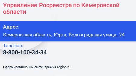 Управление Росреестра по Кемеровской области по адресу Кемеровская область, Юрга, Волгоградская улица, 24 в дальнейшем Организация, размещена в следующих категориях:
