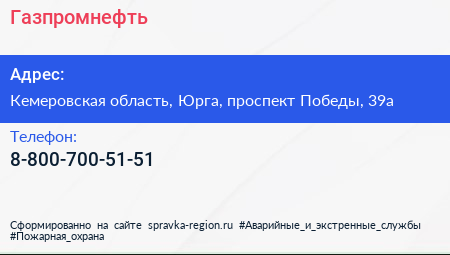 Газпромнефть по адресу Кемеровская область, Юрга, проспект Победы, 39а в дальнейшем Организация, размещена в следующих категориях: