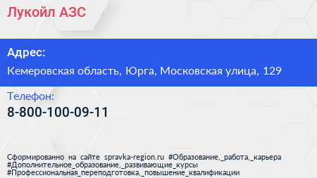 Лукойл, АЗС по адресу Кемеровская область, Юрга, Московская улица, 129 в дальнейшем Организация, размещена в следующих категориях: