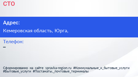 СТО по адресу Кемеровская область, Юрга, в дальнейшем Организация, размещена в следующих категориях: