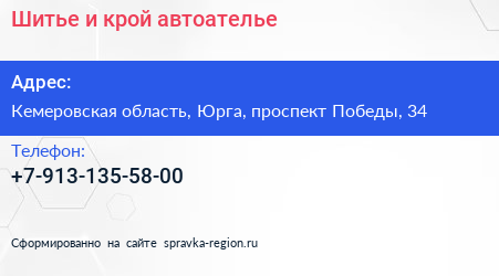 Шитье и крой, автоателье по адресу Кемеровская область, Юрга, проспект Победы, 34 в дальнейшем Организация, размещена в следующих категориях: