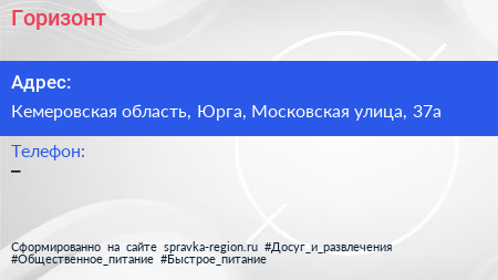 Горизонт по адресу Кемеровская область, Юрга, Московская улица, 37а в дальнейшем Организация, размещена в следующих категориях: