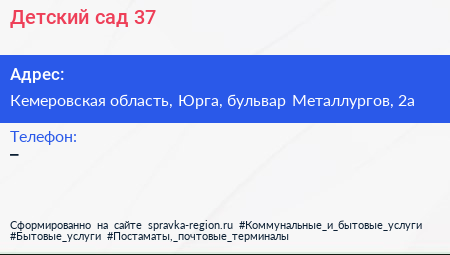Детский сад №37 по адресу Кемеровская область, Юрга, бульвар Металлургов, 2а в дальнейшем Организация, размещена в следующих категориях: