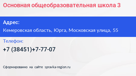 Основная общеобразовательная школа №3 по адресу Кемеровская область, Юрга, Московская улица, 55 в дальнейшем Организация, размещена в следующих категориях: