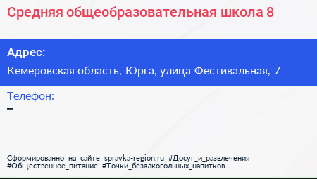 Средняя общеобразовательная школа №8 по адресу Кемеровская область, Юрга, улица Фестивальная, 7 в дальнейшем Организация, размещена в следующих категориях: